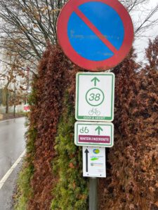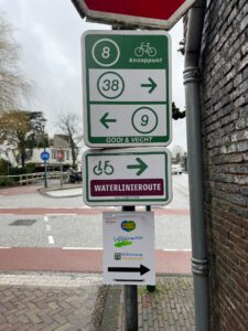 Voor de fiets route gebruiken we de genummerde fiets knooppunt borden. Daarnaast hebben we ook onze eigen borden opgehangen. Deze blijven het hele jaar hangen.